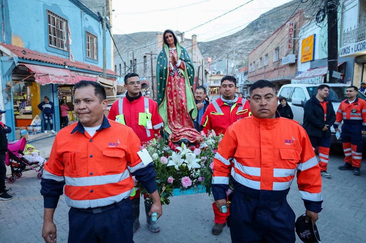 Virgen de Guadalupe, colaboradoras y colaboradores de la mina Aranzazu participaron en una peregrinación por las principales calles del municipio de Concepción del Oro, como una muestra de fe, identidad y respeto a las tradiciones que forman parte de la vida comunitaria.