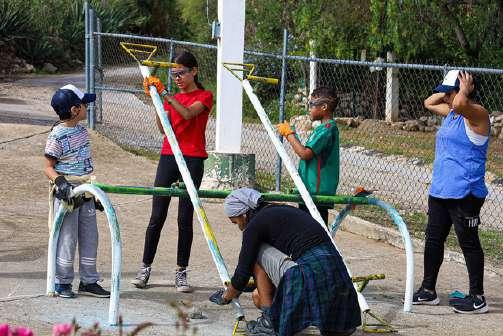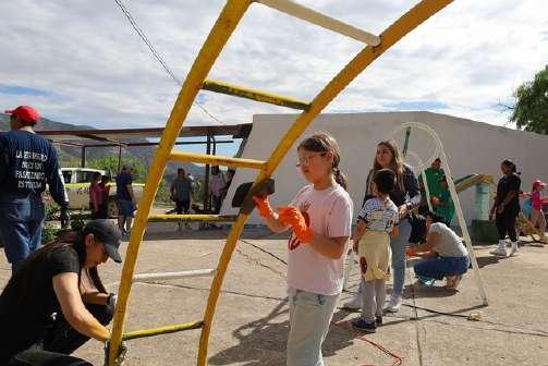 Entre las acciones realizadas están el mantenimiento y pintura a juegos infantiles de acero, baños, salón de clases, pasillos y pileta de agua; así como larecoleccióndebasuradetodoelplantel.