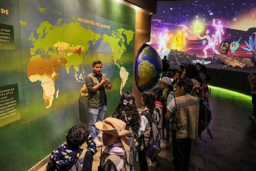 En su recorrido, los niños y niñas zacatecanos conocieron las distintas áreas del museo, que se divide en Sala del Desierto y su Pasado, donde se pueden observar fósiles de dinosaurios;lasalaElDesierto y el Hombre; la sala de Evolución y Biodiversidad y la sala Ecosistemas de la Vida o DesiertoViviente.