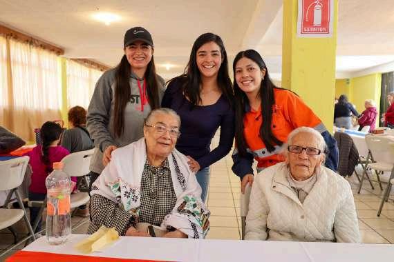 Los colaboradores y colaboradoras de Aranzazu, también convivieron y platicaron con los abuelos y abuelas asistentes, quienes conversaban sobre sus familias, trabajosypasatiempos.