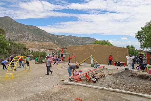 El jardín de niños se localiza a pocos pasos delaunidadminera,dondetambiénniñosy adolescentes participaron como voluntarios.
