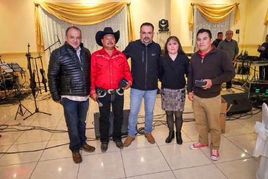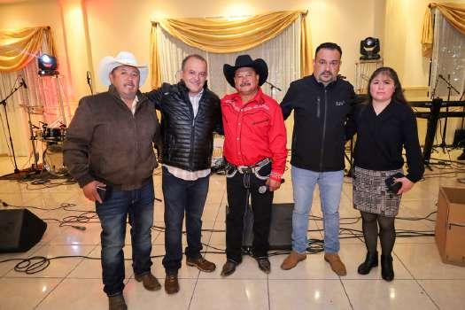 Valentín Corona y Juan García, representantes sindicales, junto con otros colaboradores de la empresa y el entrenador de Beisbol, Héctor Sánchez Sosa, quien pertenece a la academia de Saraperos de Saltillo, entregaron a los niñosyniñassusnuevosuniformes.