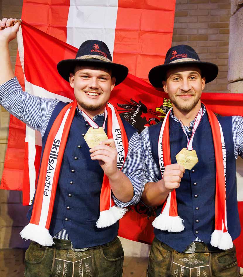 Titelbild: Der Oberösterreicher Lukas Ritzberger (rechts) holte Gold in Betonbau mit Lukas Miedler aus Niederösterreich