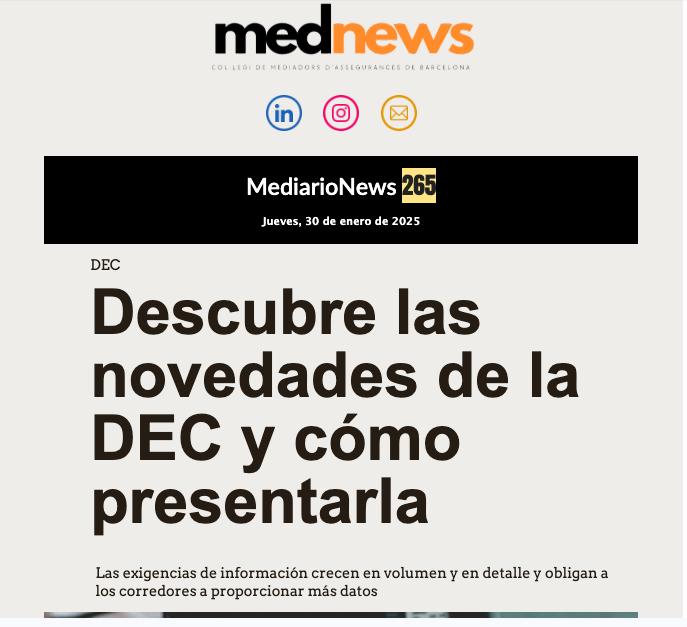 MediarioDOSSIER DIGITAL es una marca registrada. Se autoriza la reproducción de informaciones y artículos siempre que se cite la procedencia y autoría, y previa comunicación escrita al Col·legi de Mediadors d’Assegurances de Barcelona.