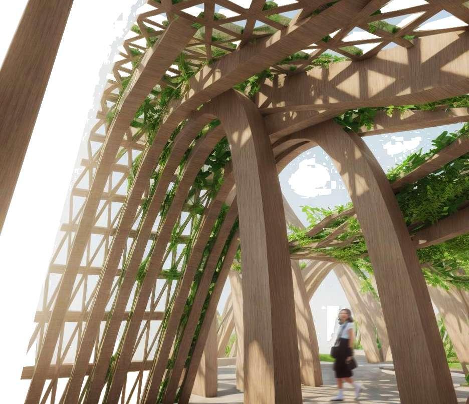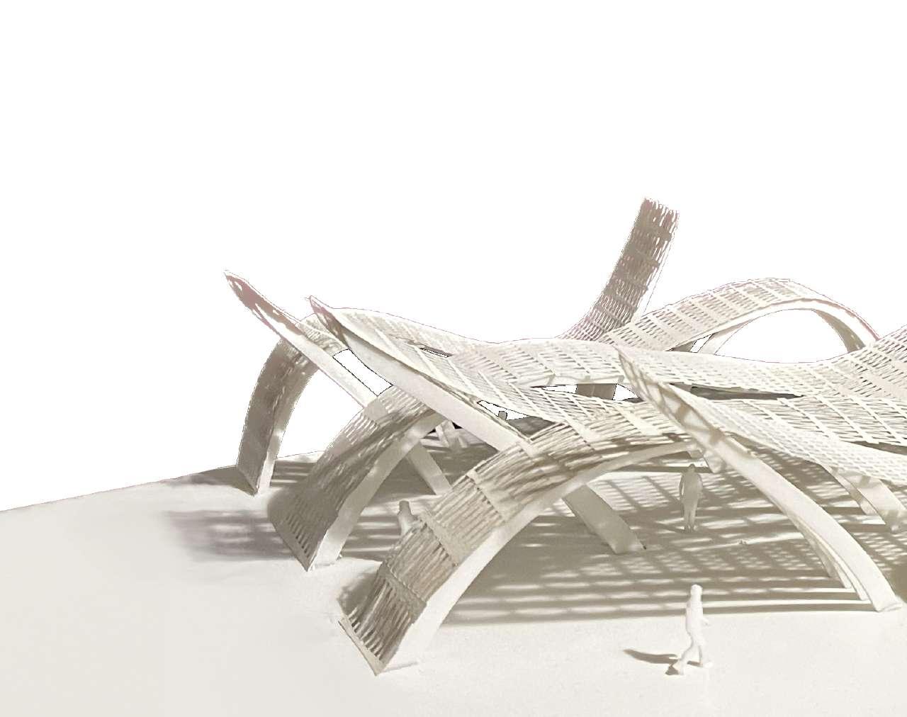 This pav ilion-like project uses the principles of puncturing, repetition, and dynamic design to create a structural system