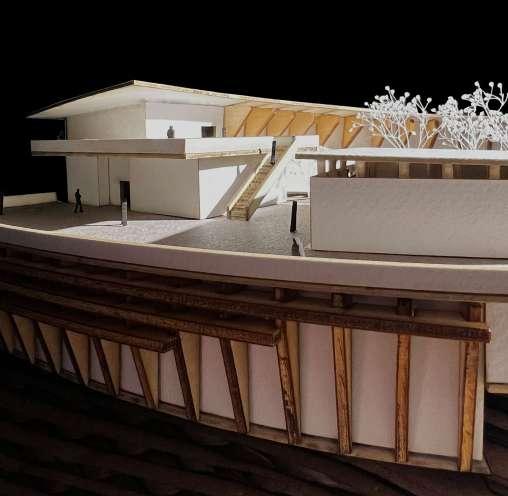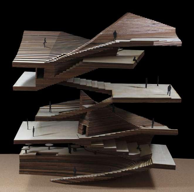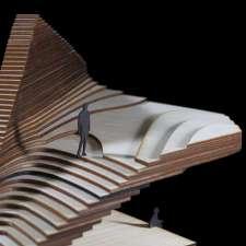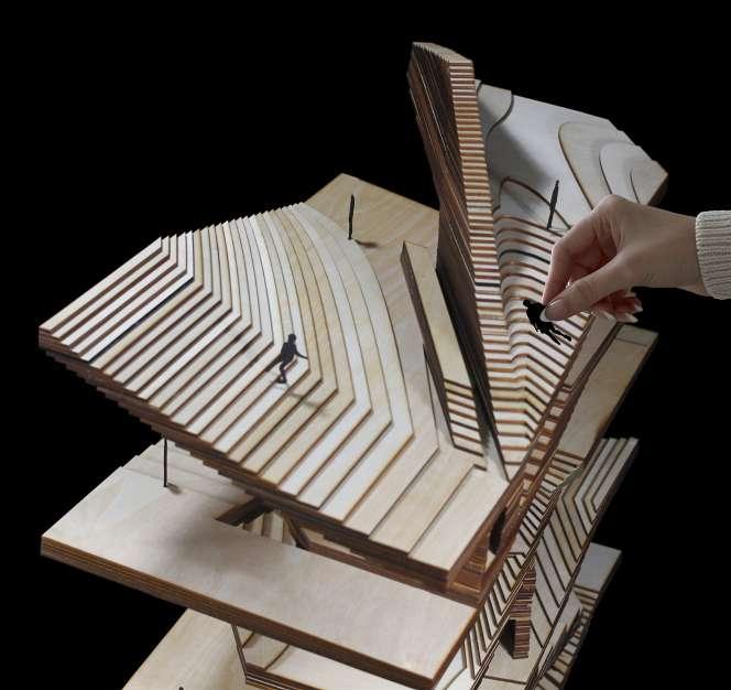The organically emerging structure is grounded yet defies gravity as it peels away creating occupiable spaces beneath