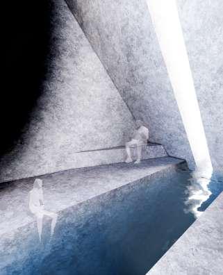 Concrete blocks and allows fragments of the exterior world indoors, and serves as a gateway between urban and water