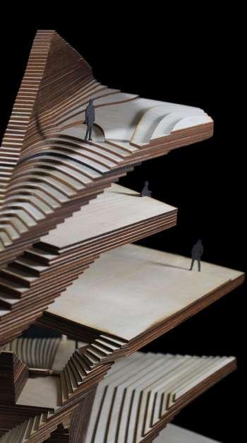Over 150 layers of plywood come together to create the Heritage Hill model
