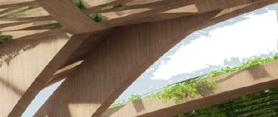Tree-like columns push and pull on the roof, creating a ribbon-like effect