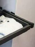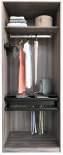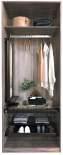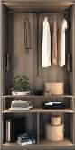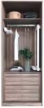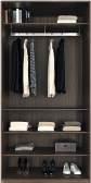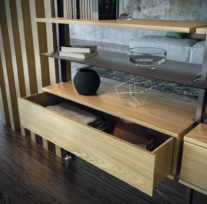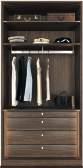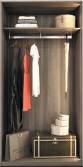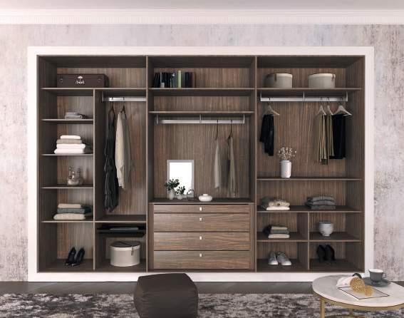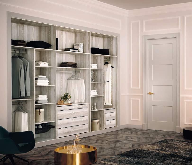 Interior of module A with Arido finish. Optional drawers and tilting hanger bar accessory. Intérieur de module A avec finition Árido. Tiroirs et accessoire de la barre additionnelles.
