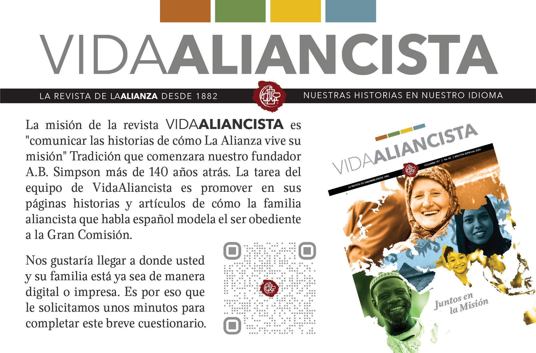 A finales del 2021, con la aportación financiera de la organización Lilly Endowment, la Alianza completó un estudió de las Iglesias hispanas de la Alianza en los Estados Unidos. El estudió identificó que las Iglesias hispanas con vitalidad han desarrollado 6 factores los cuales fueron consistentes en todas las Iglesias con vitalidad. Parte del programa de ayudar a los pastores hispanos para desarrollar esos factores es darlos a conocer a la familia aliancista hispana. Es nuestra intención que cada edición de Vida Aliancista durante el 2023 ayude a pastores, lideres y congregaciones a identificar como implementar elementos de vitalidad en sus ministerios.
