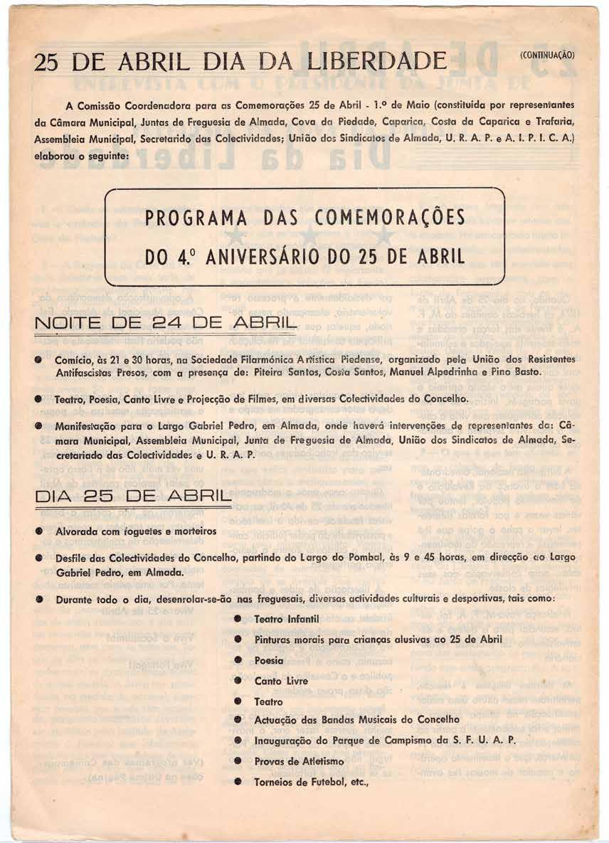 2 - Programação das comemorações do 25 de abril em Almada, 2011. Arquivo Histórico Municipal de Almada, Periódicos, Boletim Municipal de Almada, n.º 170, abril 2011, p.28.
