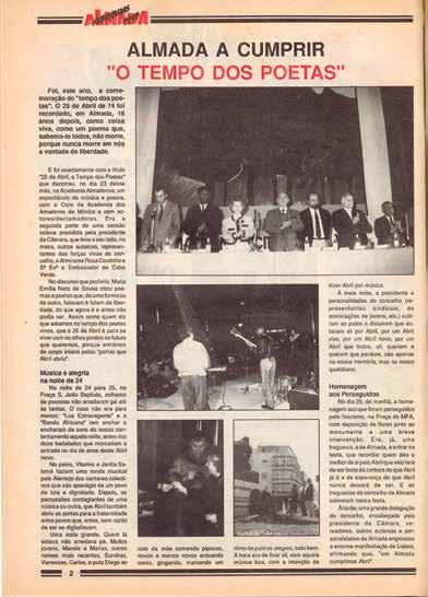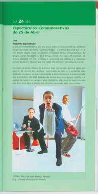 1 Cartaz de divulgação com o programa das comemorações dos 36 Anos do 25 de abril, com pintura de Albino Moura, 2010. Arquivo Histórico Municipal de Almada, Câmara Municipal de Almada, Cartazes, n.º 12980. 2 Publicação com a divulgação de atividades para crianças, alusivas ao 25 abril, 2010. Arquivo Histórico Municipal de Almada, Periódicos, Agenda Almada Informa, n.º 95, abril 2010, p.14.