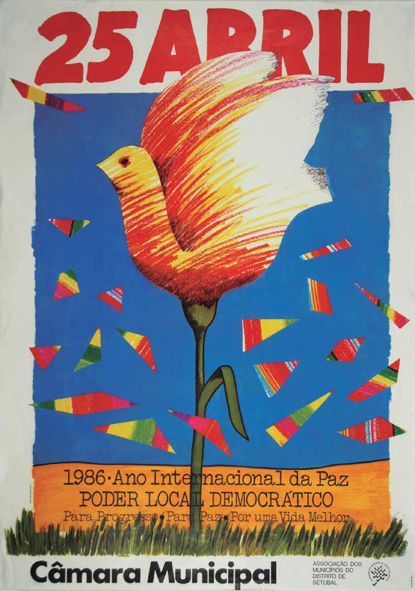 1- Cartaz de divulgação das comemorações do 25 de abril, com pintura de Luís Ralha, 1989. Arquivo Histórico Municipal de Almada, Câmara Municipal de Almada, Cartazes, n.º 8309.