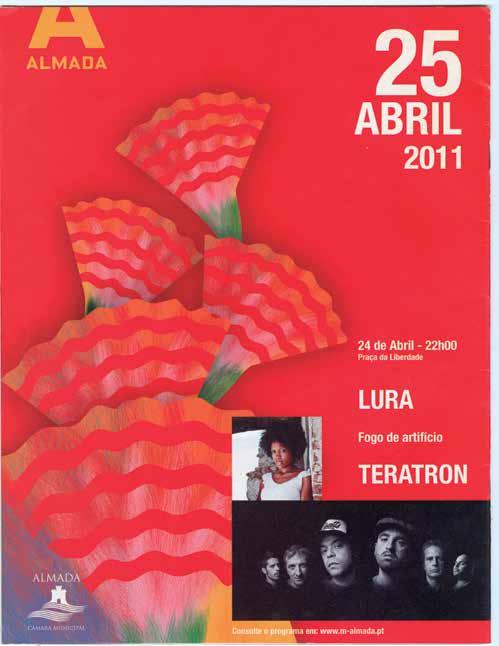 1 Cartaz de divulgação com programa das comemorações do 25 de abril, 2012. Arquivo Histórico Municipal de Almada, Câmara Municipal de Almada, Cartazes, n.º 12982. 2 e 3 Espetáculos de Deolinda e Fausto, nas comemorações do 25 de abril em Almada, 2012. Arquivo Histórico Municipal de Almada, Câmara Municipal de Almada, Fotografias, n.º 13035 e 13040. 3 2
