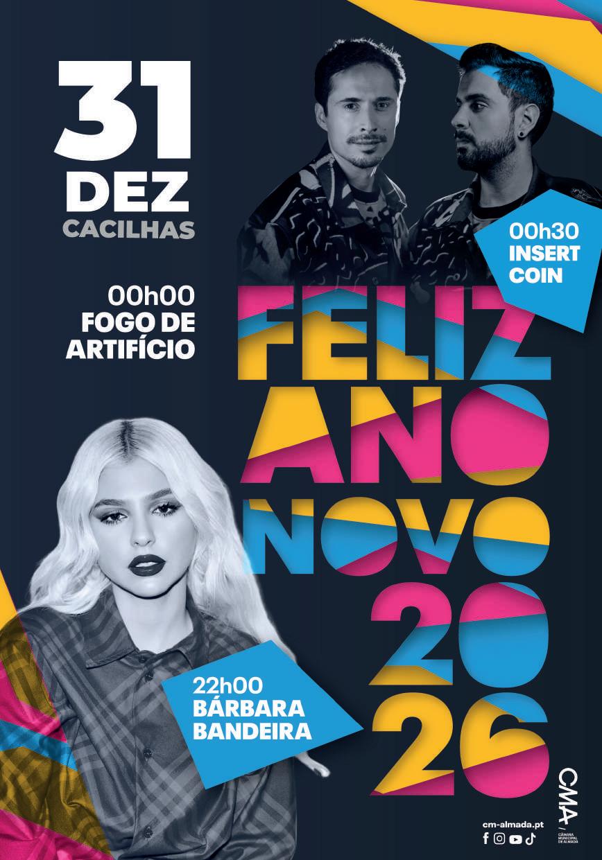 A passagem de ano volta a ser à beira Tejo, junto à Fragata D. Fernando II e Glória. O palco principal ganha vida a partir das 22h com a atuação de Bárbara Bandeira, marcada por grandes sucessos. À meia-noite em ponto, o céu ilumina-se com um espetáculo piromusical, onde a música e o fogo de artifício se fundem num momento sensorial que celebra o recomeço e a esperança de um novo ciclo. A festa continua, a partir das 00h30, com os Insert Coin num espetáculo cheio de ritmo, interação e boa disposição.