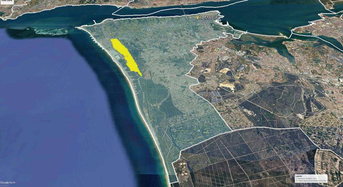 Figura 4- Localização do Agroparque das Terras da Costa e do Mar no municipio de Almada e na Paisagem Protegida da Arriba Fossil da Costa da Caparica
