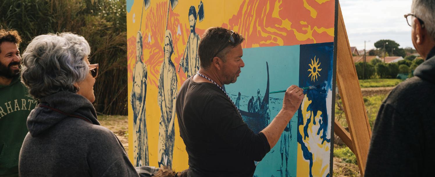 FOTO 51 - Encontro Terramar 2025. Moradores participam na pintura em homenagem aos agricultores e pescadores, do artista Vasco Maio. ................................... 80