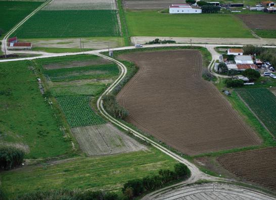 Do total da área utilizada para produção alimentar em contexto terrestre (FOTO 3), 16% encontra-se em contexto de Reserva Agrícola Nacional. Relativamente à aptidão edafomorfológica da região, apenas 7,5% corresponde a classes elevada e muito elevada para culturas de regadio e 12,5% à classe elevada e muito elevada para culturas de sequeiro.