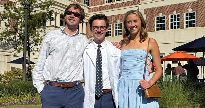 Noah Stenslie ‘19 graduated from Samford University with a BS in Biology in 2023. Following graduation, Noah moved to Blacksburg, VA, for one year to get his Masters of Biomedical Science from VCOM/Bluefield University. Currently, he is in his first year of medical school at Edward Via College of Osteopathic Medicine in Auburn, AL. Pictured with Jonas Stenslie ‘21 and Siri Stenslie ‘23.
