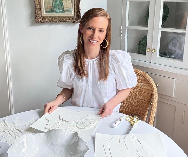Mallory (Mize) Norman ‘09 is a self-taught, mixed-media artist working primarily with paper and fabric. Her work is rooted in simplicity, with a focus on creating pieces that feel both classic and timeless. Mallory lives in Columbus with her husband, Sam, and their golden doodle, Louis, where she practices art full-time.