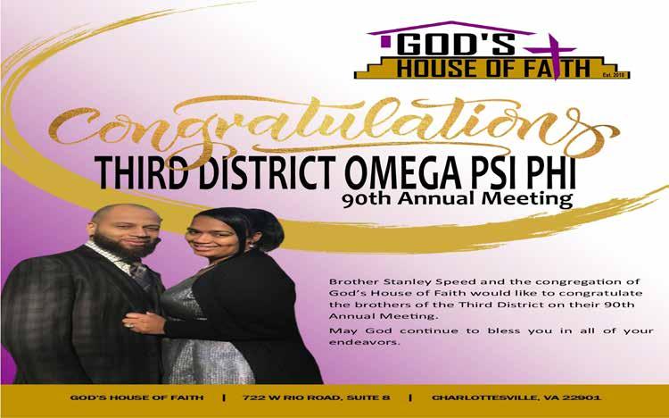 It is without a doubt that the Commonwealth is stronger because of the service of the Third District of Omega Psi Phi Fraternity, Inc. Your passion and dedication for enriching the communities you call home will continue to have a lasting impact. I wish you all a successful and rewarding 90th Annual Third District Meeting as you celebrate your accomplishments and look ahead to the future.