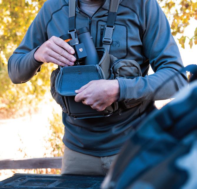 Designed as a fully integrated, all-in-one solution, the quiet and lightweight Pro Chest Pack provides complete protection for your binoculars, electronics, and gear from water, dust, and debris.