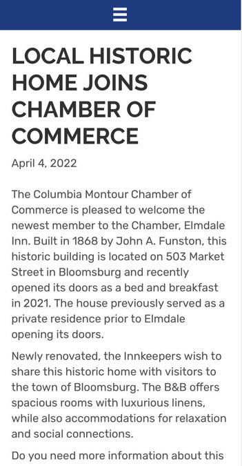 The Columbia Montour Chamber connects local businesses and provides valuable resources to promote growth and prosperity in our community.”