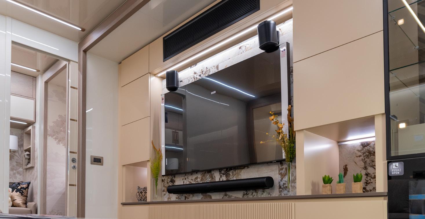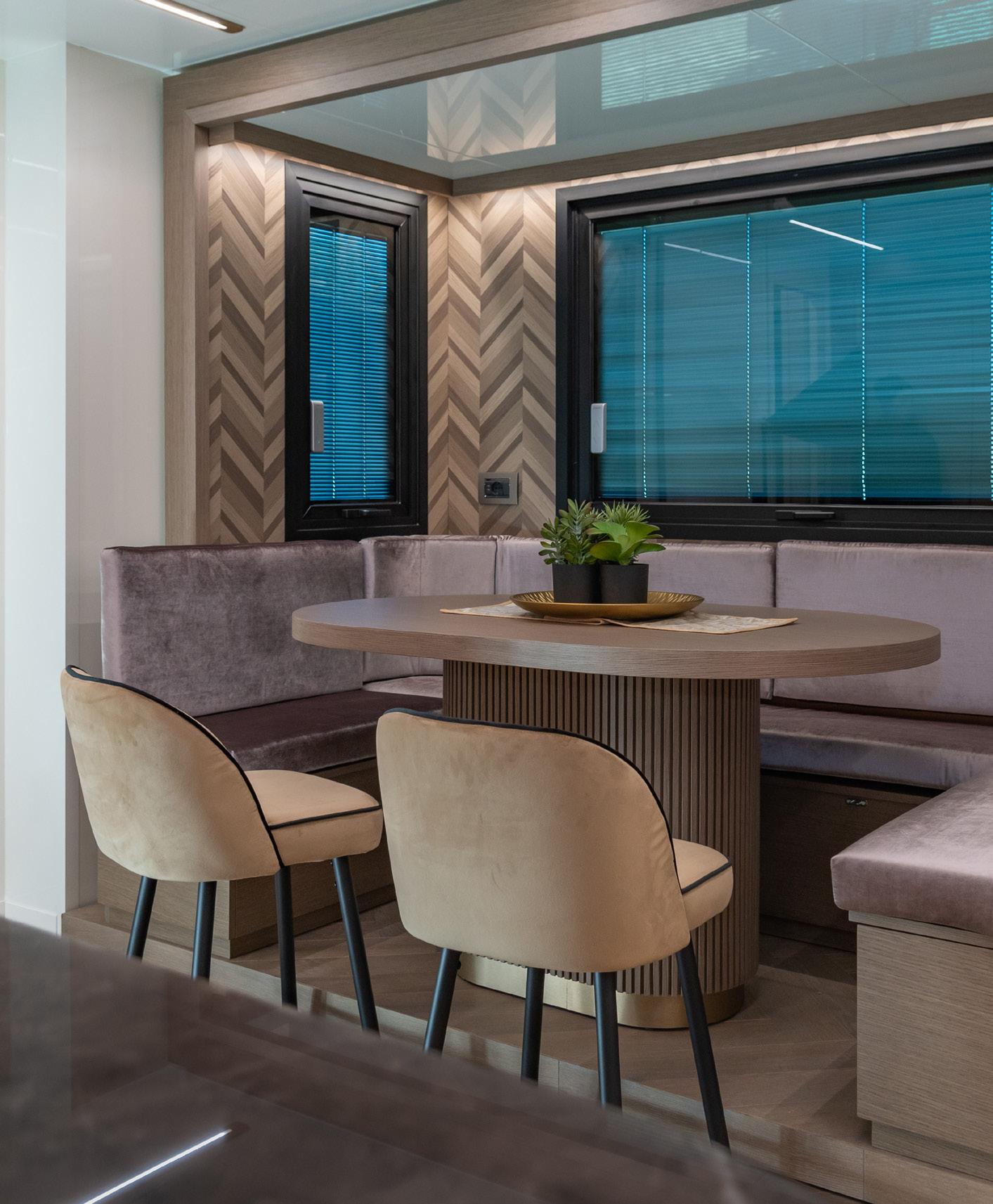 A CMC Caravan is equipped with lateral slideouts that allow the internal space to double or triple the width of the closed vehicle, offering an area of up to a maximum of 110 square meters.