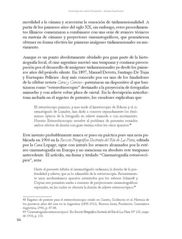 48 Registro de patente para el estereobioscopio citado en Caneto, Guillermo et al. Historia de los primeros años del cine en la Argentina (1895-1910). Buenos Aires, Fundación Cinemateca Argentina, 1996, p. 47-48. 49 ‘Cinematografía estereoscópica’. En Revista Fotográfica Ilustrada del Río de La Plata, Nº 129, mayo de 1904, p. 103.
