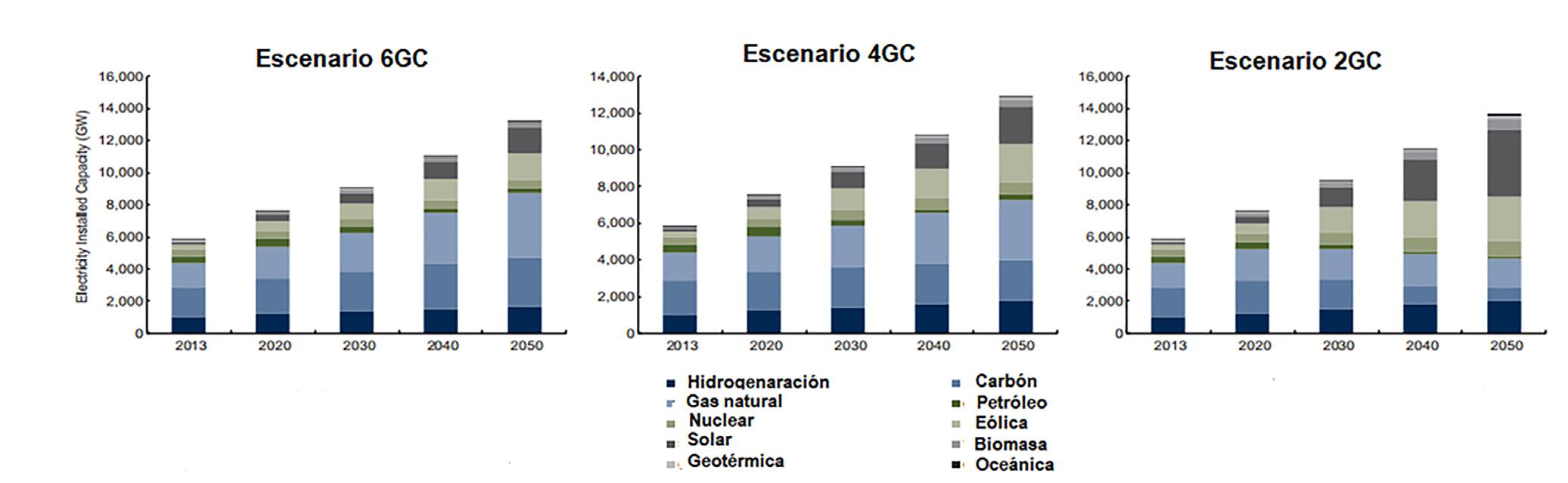 El escenario 2GC corresponde al foco principal de las agencias internacionales (ONU, IEA). Este escenario presenta una penetración de tecnologías sustentables para limitar emisiones en más de 50 % con respecto al escenario base. De lograrse implementar este escenario, la neutralidad en emisiones de carbono se alcanzaría luego del año 2050. Estamos muy lejos de implementar un cambio transformacional y tecnológico de tal magnitud.