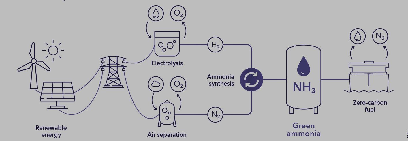 Mediante la producción de amoníaco “verde”