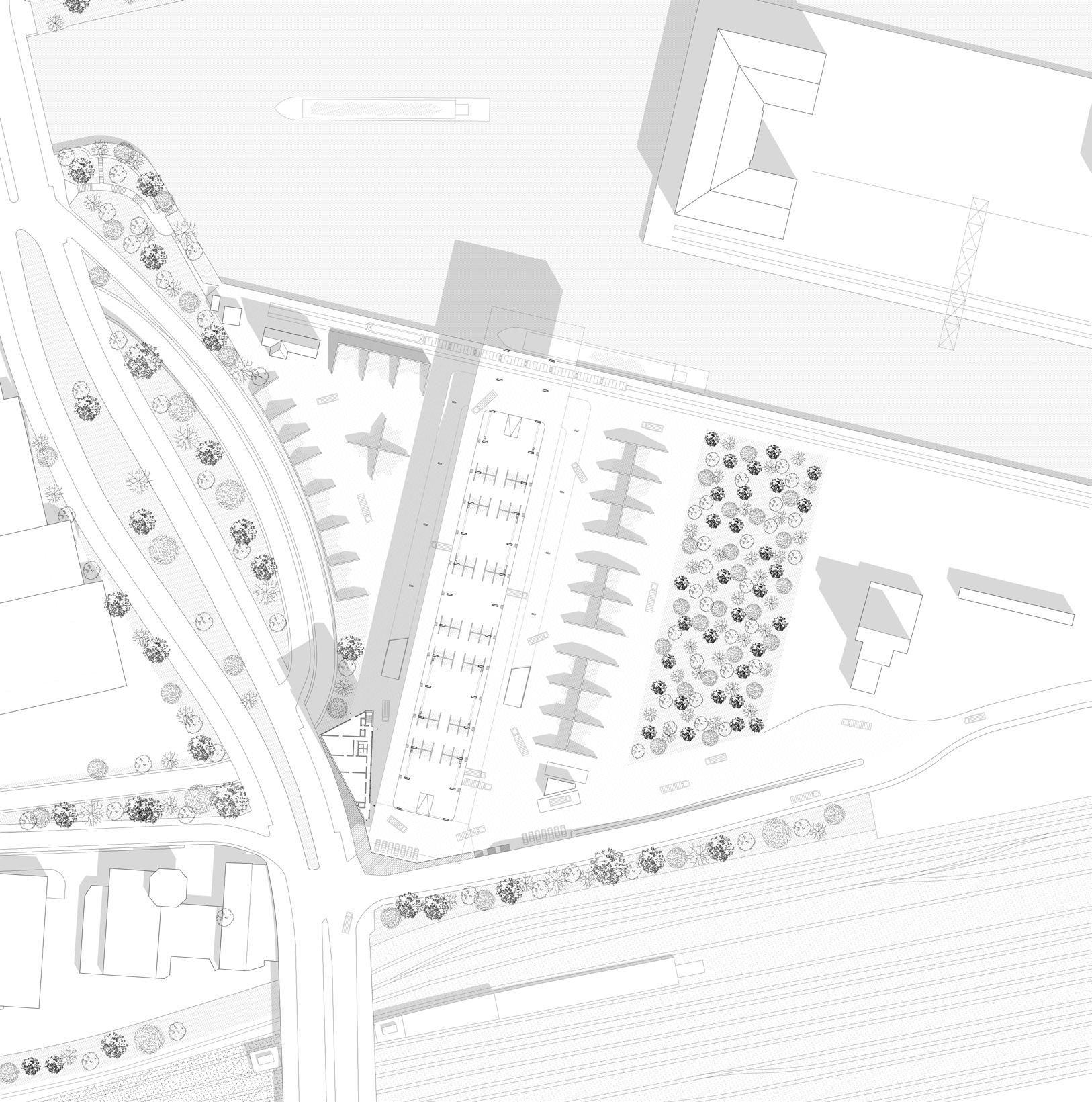 Auf dem dreieckigen Grundstück nördlich des Berliner Hauptbahnhofs soll ein zeitgenössisches Fahrradparkhaus für min. 3000 Fahrräder entstehen. Da ein großer Teil des Grundstücks als Feuerwehrzufahrtsbereich für die beiden Notausgänge der Bahntunnel frei bleiben soll, entstand die Idee diesen Bereich als Innenhof zu verstehen und rings herum die öffentlichen Gebäudefunktionen anzuordnen. Auf den oberen Geschossen befinden sich die Parkebenen. Da das Gebäude von umlaufenden Verkehr und dem Busbahnhof im Osten umschlossen ist, bekommt die Fahrradgerechte Erschließung einen hohen Stellenwert.