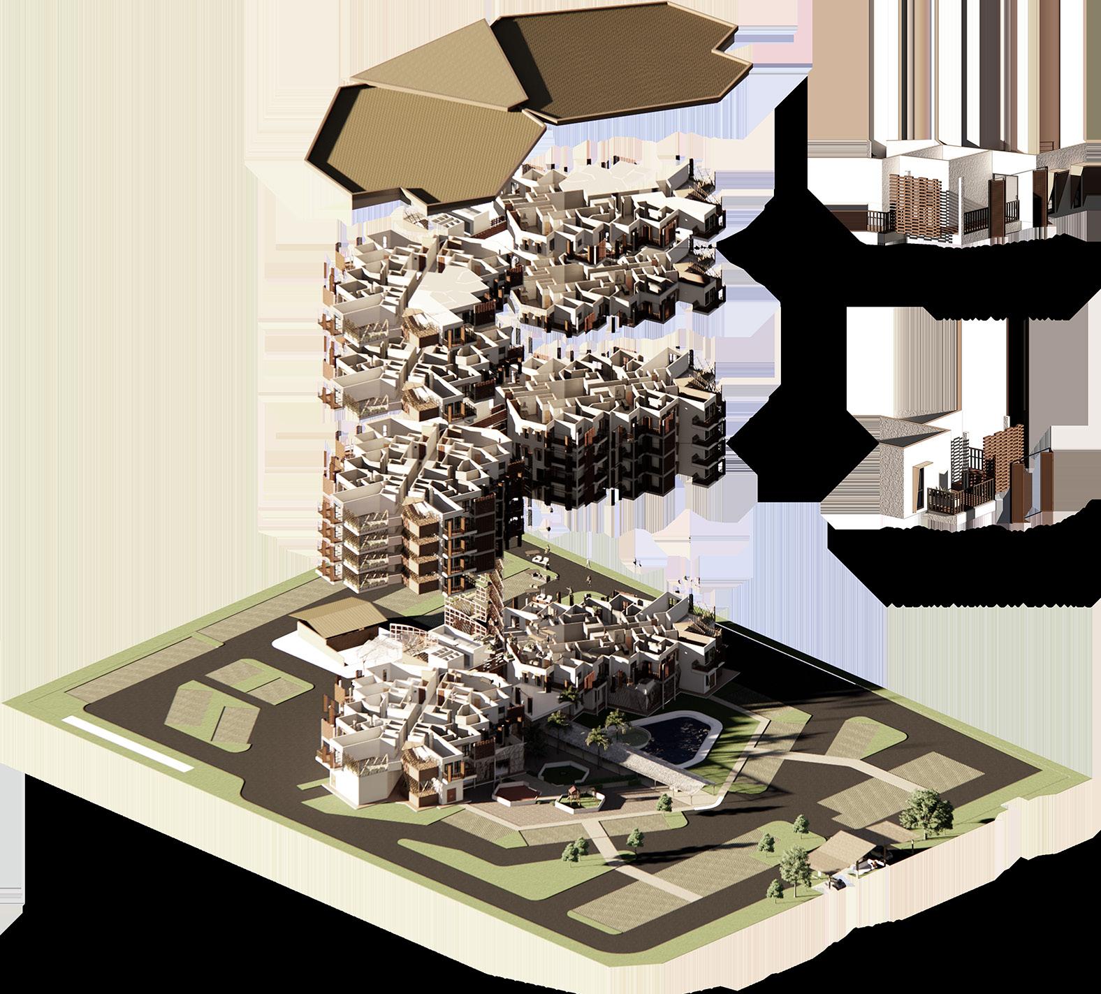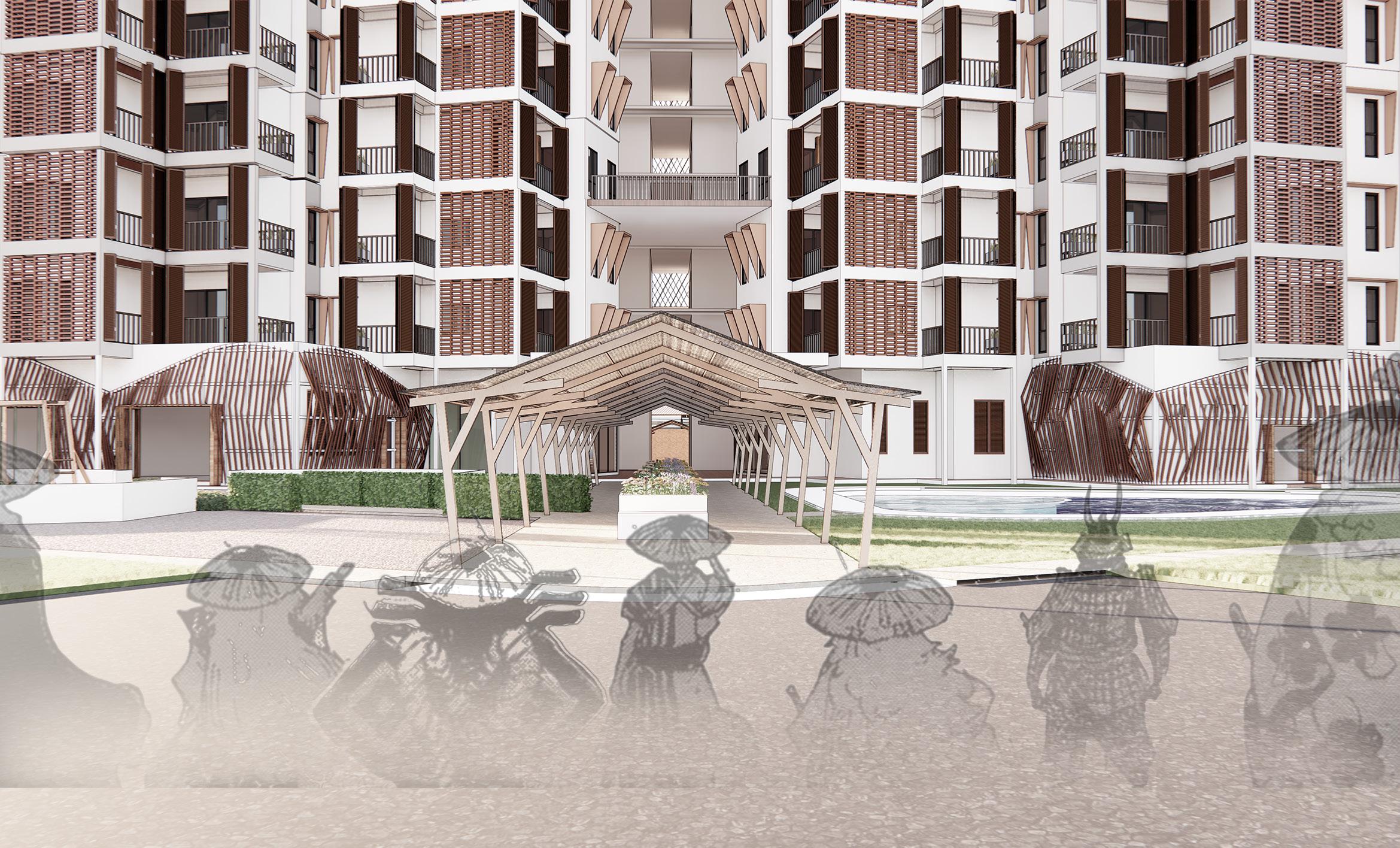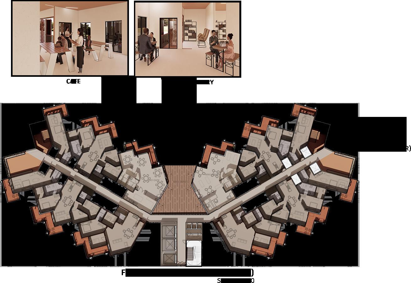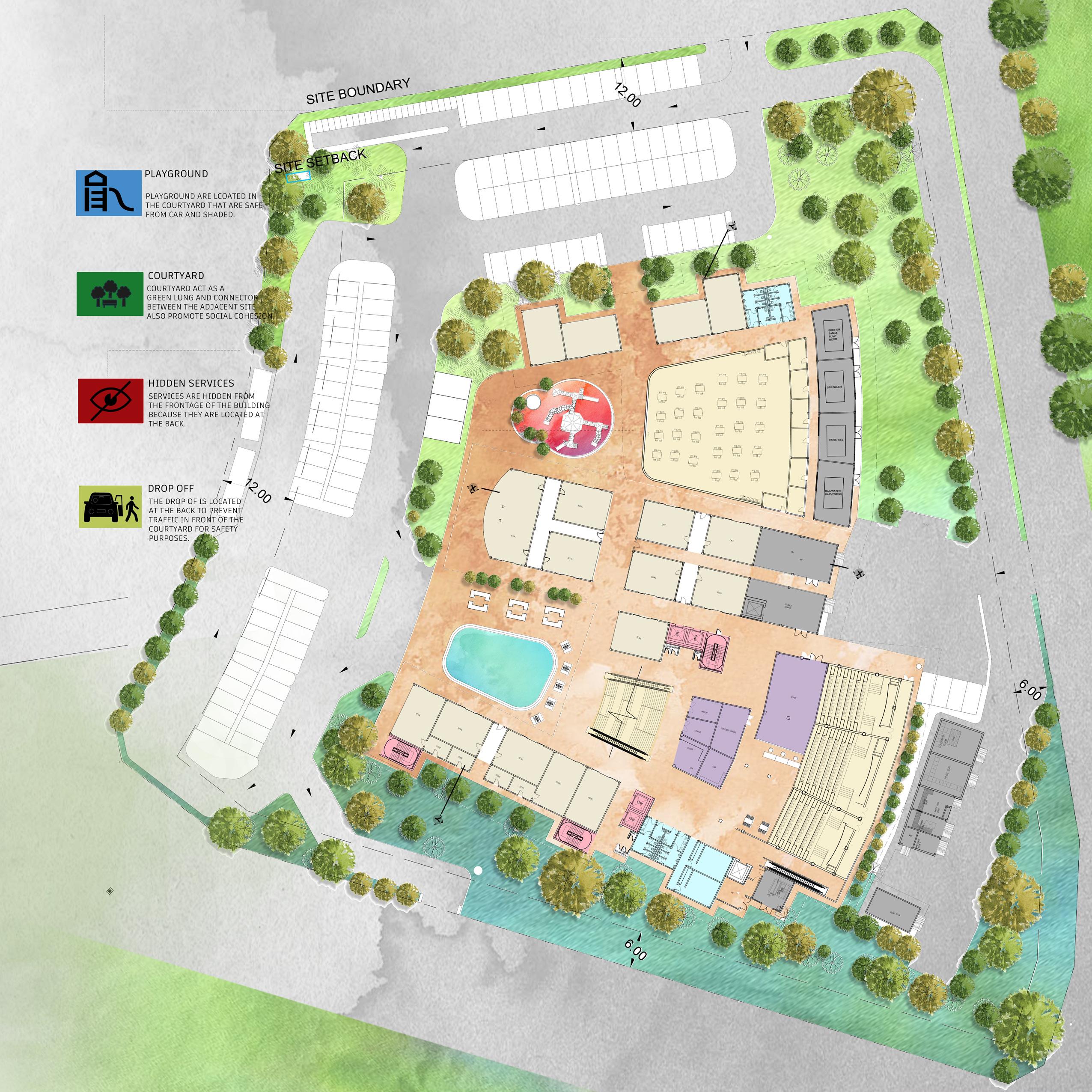 Serendipity refers to unexpected encounters with ideas or insights and their intentional application to achieve favorable outcomes. but in this issue, to enhance the encounters between residence to interact with each others. the legibility of open space that will help to enhance social interactions. by creating the courtyard space as a connector between all spaces and the addition of greeneries to provide health benefits.