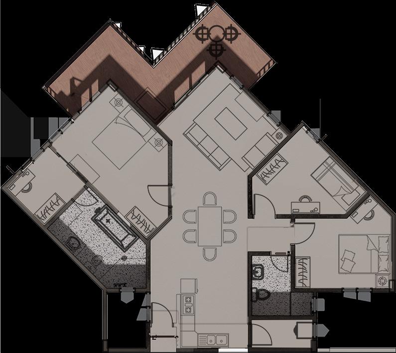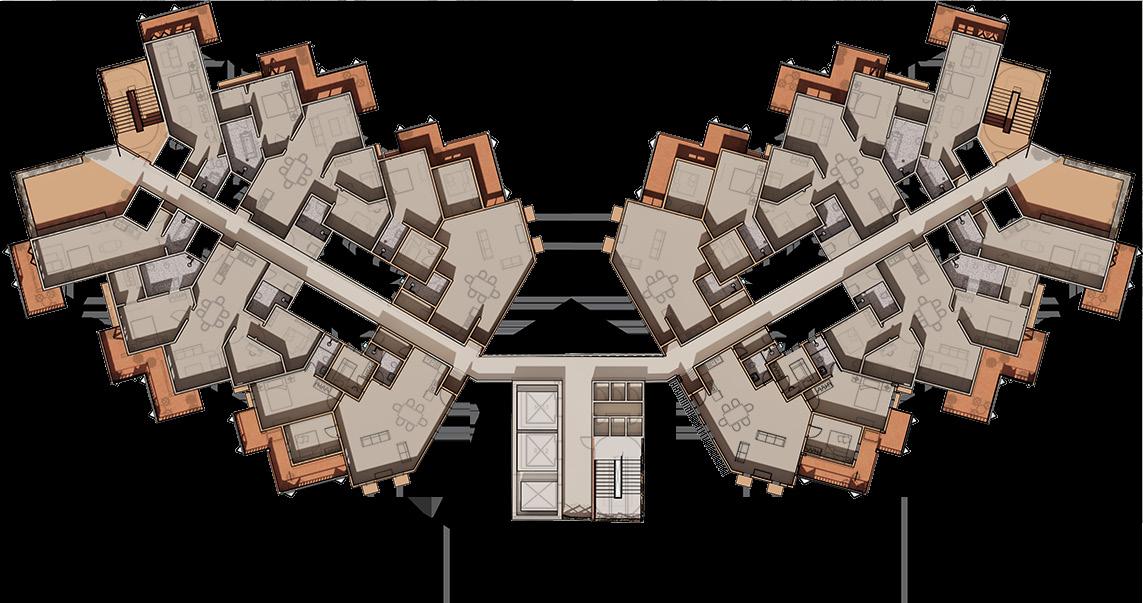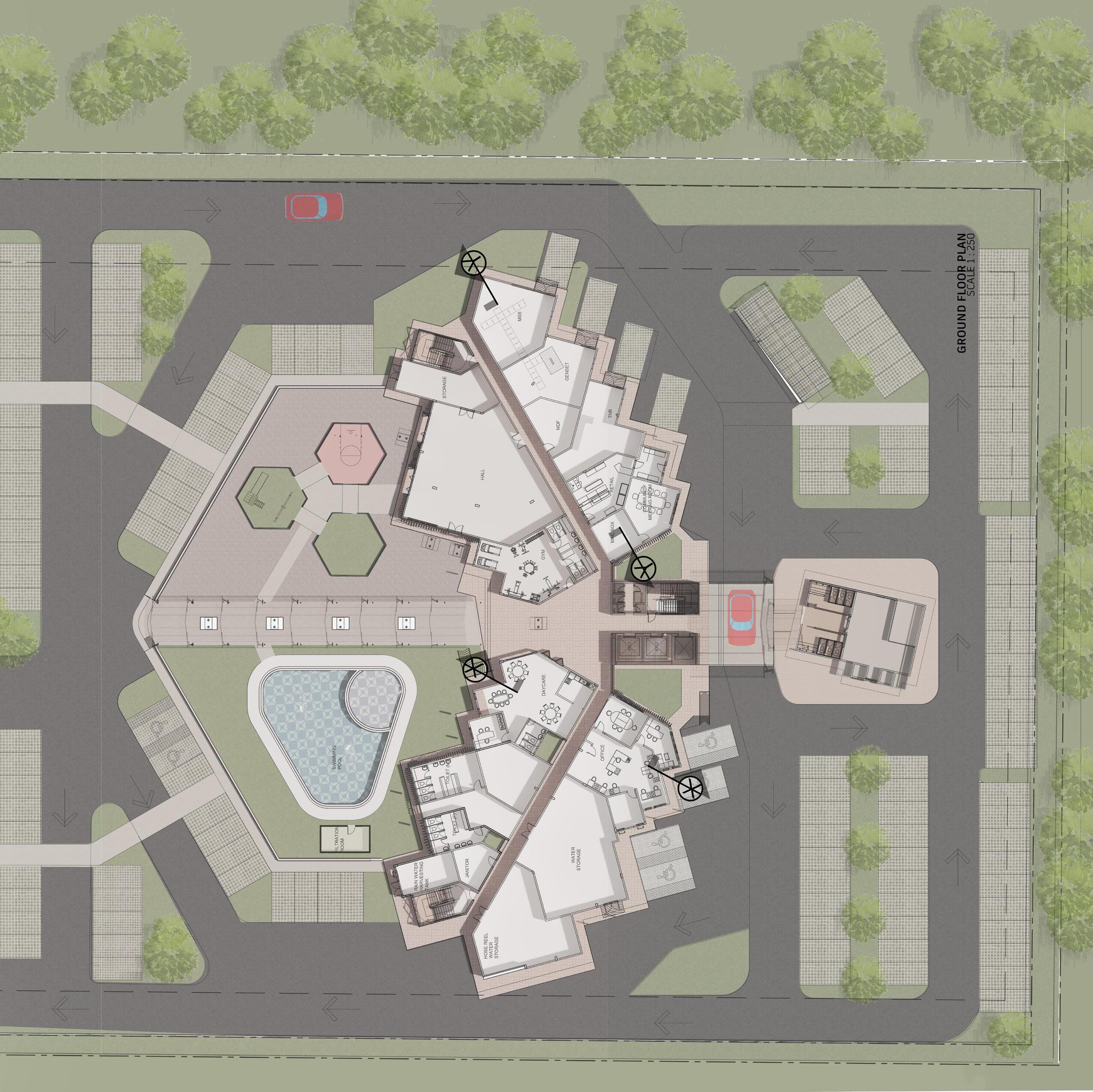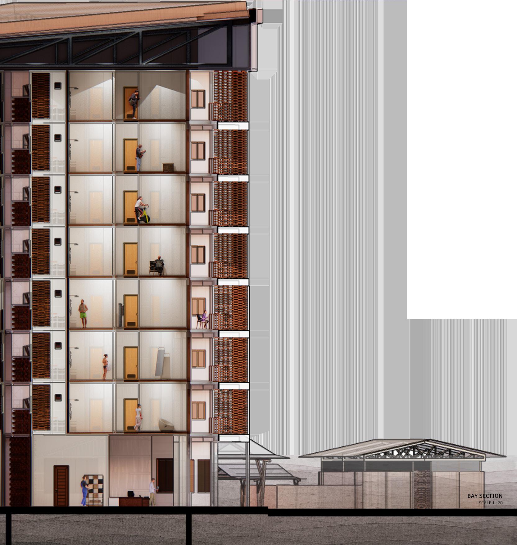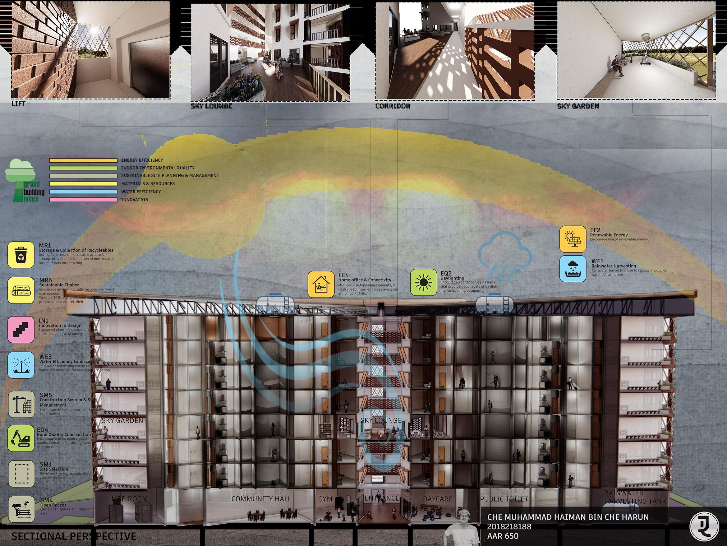 Serendipity refers to unexpected encounters with ideas or insights and their intentional application to achieve favorable outcomes. but in this issue, to enhance the encounters between residence to interact with each others. the legibility of open space that will help to enhance social interactions. by creating the courtyard space as a connector between all spaces and the addition of greeneries to provide health benefits.