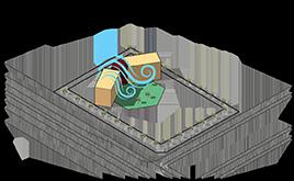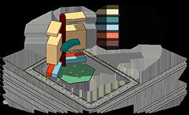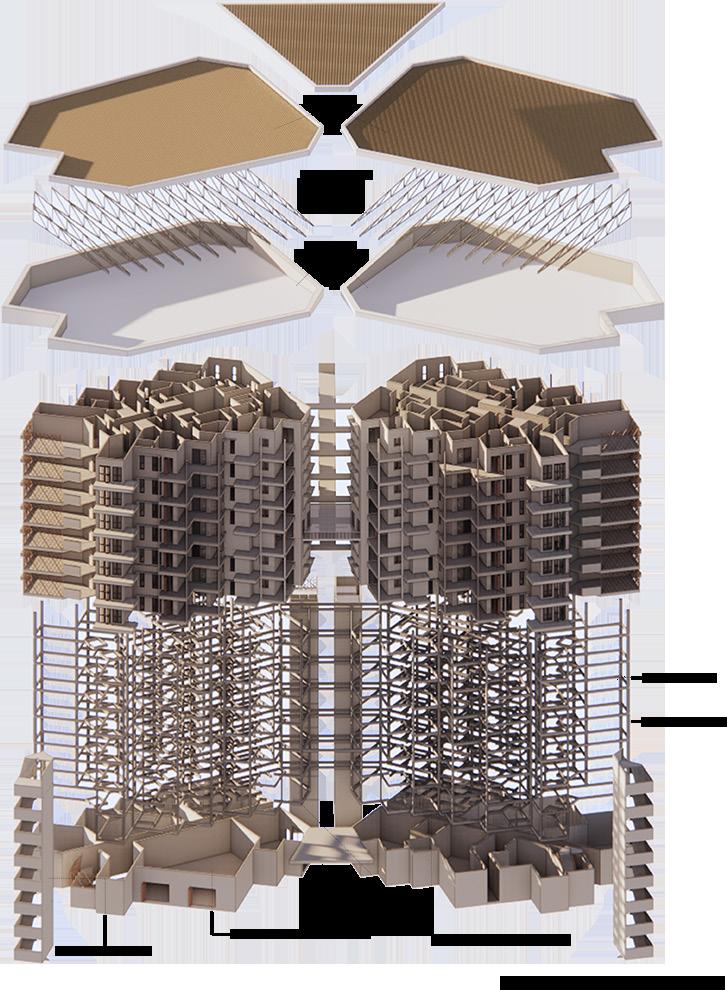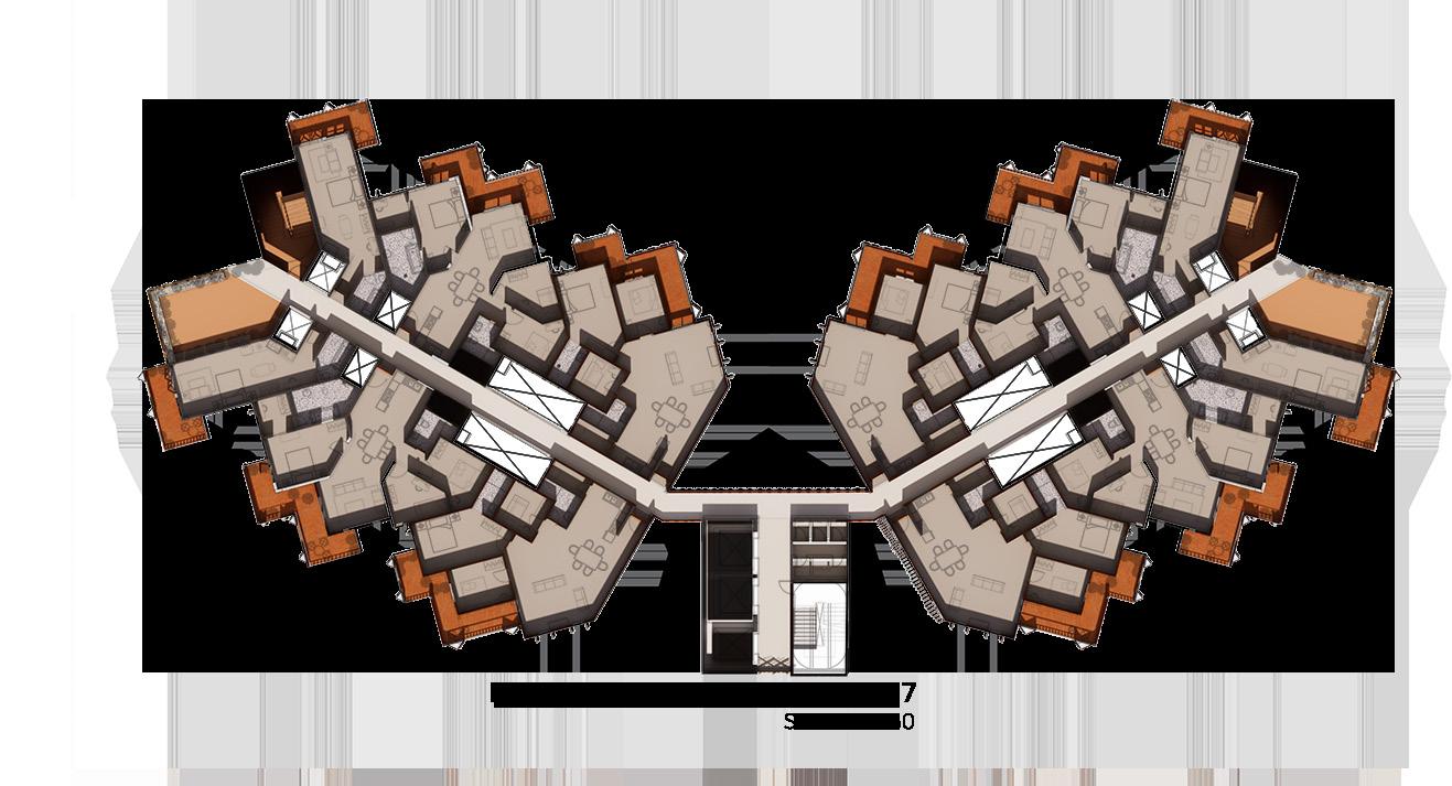 THE SQUARES ARE ROTATED IN ORDER TO IMPROVE THE ORIENTATION AND CREATE FACADE