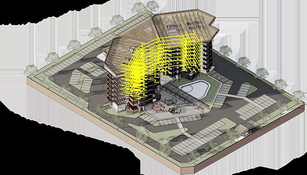 THE WALL THAT ARE EXPOSED TO DIRECT SUNLIGHT TAT ARE INDICATED AS COLORED WALL WILL BE SOLID.