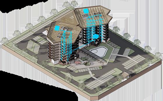 THE UNITS ARE STAGGERED TO REDUCE SUIN HEAT.