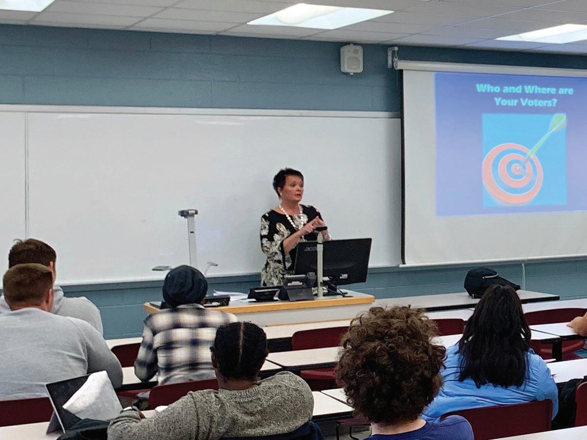 Jennifer Smeltzer is a graduate of the Women’s Campaign School at Yale University. Currently, Ms. Smeltzer is the Legislative Director at the Michigan State Senate. Ms. Smeltzer has significant experience as a Campaign Director and is the owner of CCS Campaign Solutions. When visiting the students enrolled in PSC 300, Ms. Smeltzer outlined how to successfully organize and execute an effective campaign plan.