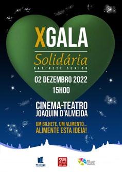 A X edição da Gala Solidária é uma iniciativa da Divisão de Desenvolvimento Social e Promo ção da Saúde, com o apoio da Rádio Popular FM, com o objetivo de promover a solidarieda de social e auxiliar todos os que se encontram em situação de maior vulnerabilidade. Assim, para assistir ao espetáculo, basta trocar um ali mento (não perecível) por um bilhete. Os alimentos recolhidos serão entregues às famílias carenciadas e beneficiárias de apoio alimentar do concelho do Montijo. O espetáculo conta, na plateia, com a participação dos seniores de várias entidades locais e artistas convidados pela Rádio Popular FM. Troque um alimento por um bilhete. Alimente esta ideia, seja solidário! 02