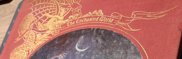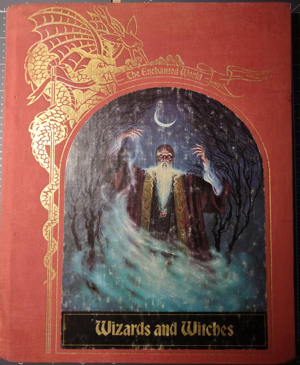 This book is called “The Enchanted World, Wizards and Witches”, by Brendan Lehane and the Editors of Time-Life Books. This is a book I’ve had on my shelf for years but have never read more than a few pages. While I do like the gold lettering, it is a little difficult to read from the left but is easily read from the right. The font is the