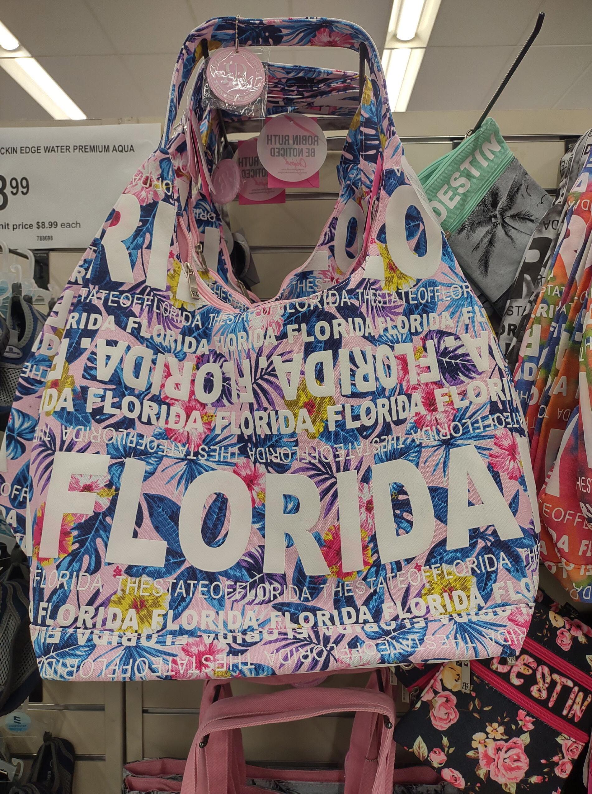 I found this bag at CVS in Destin; I chose it for my poor example because of the lack of readability. The bag is a cute concept, the other colors weren’t as bad (you might be able to see that just to the right there is a similar back, it has a tie-dye pattern that is darker and the white font stands out much better), but the white text fades into the pink background, the blue leaves help, but they also add visual clutter. The text “the state of Florida” has no spaces between the words that I can see, and with it being randomly flipped upside down it is difficult to see. “Florida” isn’t as bad, but it’s the only other word on the bag. It is pasted many times, it’s just that the font size is increased. They could have kept the same color concept but just switch things around, if the background were white, the leaves pink, and the text blue, for example. Or if they simply chose a color that has more contrast for the text. The spacing, I don’t really understand. I don’t think it would have taken away from the design to make sure the words had spacing between them, to ensure that the individual words can be seen and understood. This bag just feels so busy, but it also doesn’t have a whole lot going on.