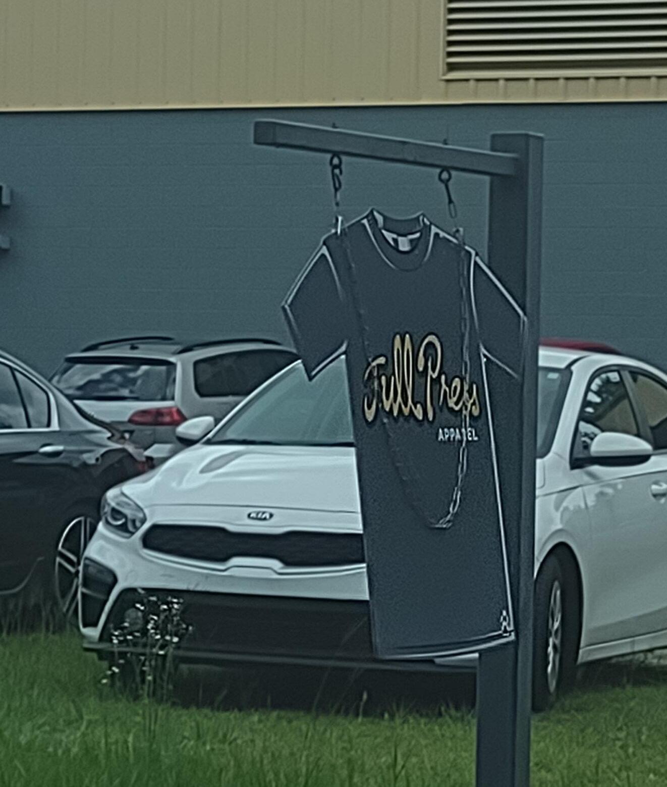This was a shop I passed by in Tallahassee several weeks ago, the same week as our first entry. How time flies. It caught my attention because of the sign, I thought it was a very nice execution of a creative plan. “Full Press” is a desaturated yellow that calls (but doesn’t scream) for atten-tion. The letters are cursive, and there’s an arch to the shape of the top of the characters (the bottom remains flat). The word underneath, “apparel” is white on the sign (to contrast with the dark gray background) and on the building it is not white but the same shade of gray as the shirt sign. It is consistent without being exact. This does not have to do with typography, but I didn’t realize until after looking back at the picture that the chain holding the sign/shirt up continues as what looks to be a chain necklace over the shirt sign. Overall, this is a simple design. But as I’ve said before (and I’m sure I’ll say again in the relative future), simple is oftentimes best. There must be a spark to catch your attention, but too much can turn someone away just as too little can.