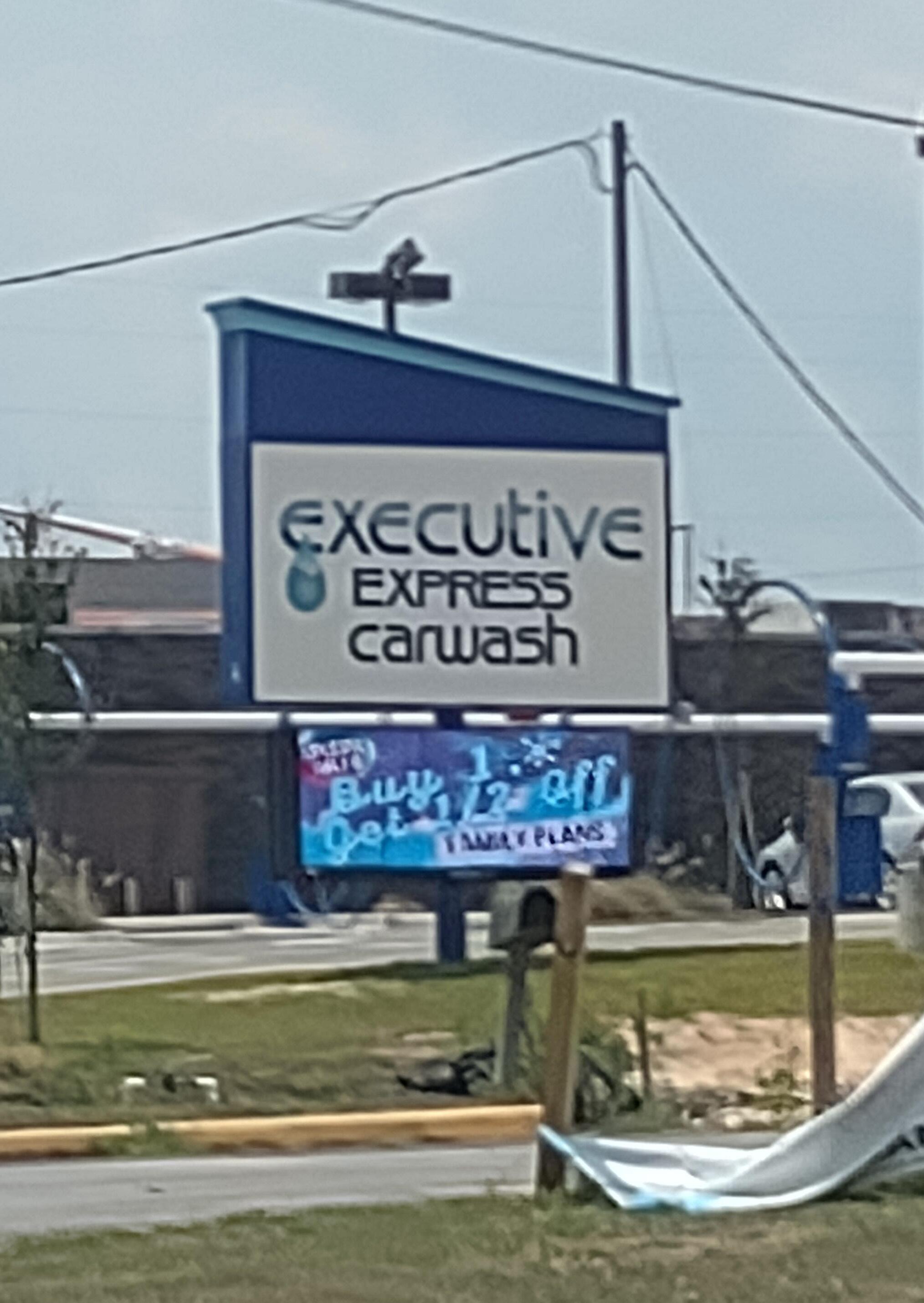 This is a sign I saw on the way home, from Destin to Fort Walton Beach. I apologize for the fuzzy image. The first thing I noticed was that the designer chose a lowercase t and i in “executive”, the only conclusion I’ve come to when I ponder why is that the ascender and the tittle (the dot over the i) balance out the water droplet. It’s besides the point but I don’t feel that a single water droplet is a good image for a carwash (especially an executive express one). After taking a fresh look, I wonder if there might be more lower-case letters in the word “executive” then I initially saw, but I’m not certain. The word “express” is capitalized, and there is an elongated stroke between the E and S that I think they could have worked with. Either that or adjust the letterspacing so the reader’s eye isn’t drawn to it. When it comes to “carwash” my only complaint is that I think a smaller font would look nicer. The three words could have tapered down nicely with just a slight adjustment. I do like the gradient in the word “executive”. It might be the quality of the photo, but the blend is not smooth between the light gray/blue and dark blue. That being said, these colors work well to give an official or executive feel.