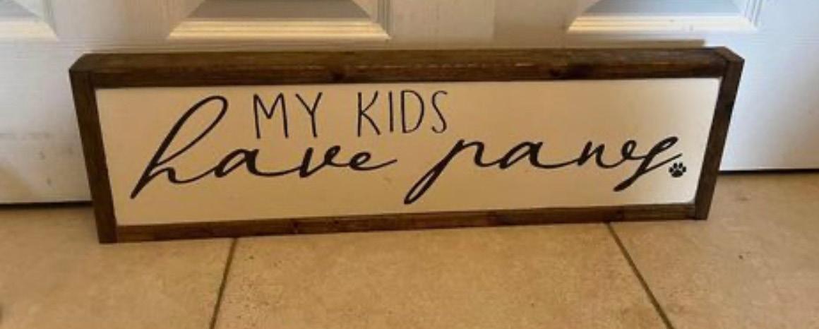 This is another sign, or home decor item, seen in passing in the company of my sister. I believe it says “My kids have paws.” But I initially saw the last word as “pany”, then “nany”. I stared at it for several minutes, wondering why the period was a pawprint, then I noticed the Y is an S! For such a simple sign, the readability is terrible. The font choice is questionable, I think there could have been a bit more contrast and a different font altogether for the second line. The color choice is fine, but the arrangement of text is off center and I am not sure that works for the piece here. I find myself wishing it was centered, there are no ascenders or descenders to clash with one another, so I don’t understand the reasoning for the text to be off centered. I suppose there does not have to be one, but my mind is stuck on that now. I think the black on off white is nice, though I do not like the combination with the color of the frame. At first glance, it looks like any other home décor item, but after a bit of study it becomes apparent that there are a few issues here that were never resolved.