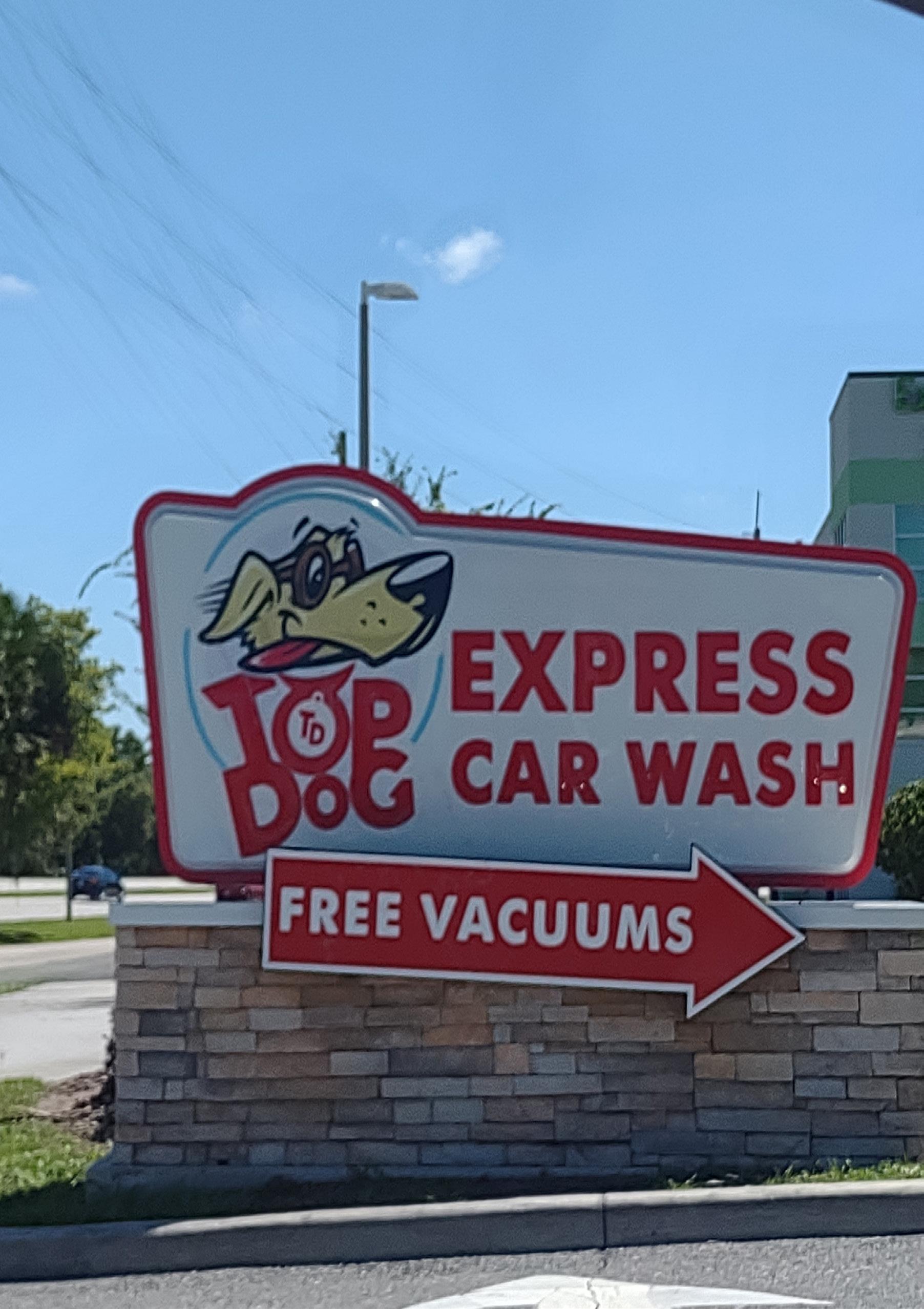 To continue with the dog theme this week, this is a carwash just down the road from my Nanny, it caught my sister’s eye and she asked if it said “Jop Doc, Toe Dog, Joe Dog? Oh, Top Dog”. This led to us laughing as we turned around to take a picture to use as a bad example, I doubt that was the intended reaction the artist was looking for. We pulled into the parking lot and I was able to get a picture of the sign as well as to see that the leading between the words “Top” and “Dog” is (probably purposefully) nonexistent. These words are smushed into one another, this is what caused poor legibility from the road. To be fair, the “Express Car Wash” portion is easily seen and it’s only the “Top Dog” portion that is difficult to read from a distance. That being said, this sign is meant to be seen from the road. I like the overall design, but all it needs is a few points of space between the lines to make sure the individual characters are visible. The “TD” within the “O” in “Top” looks like a little dog tag, I love the creativity and wanted to point it out as well, even though this is being used as my bad example.