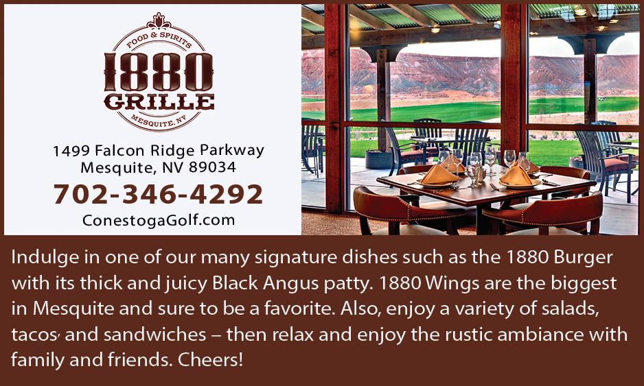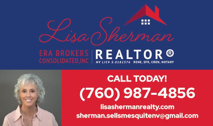 Selling Real Estate in Nevada, Arizona, AND Utah Open To All • 193 RV Sites • Big Rigs Groups & Rallies • Ride To Trail From Resort Complimentary OHV/ORV Trailer Parking Discounts for Sports Tournament Families 702-344-0497 mesquitetrailsrvresort.com NOW OPEN More Amenities Underway 1225 W Hafen Lane, Mesquite EurekaMesquite.com 800-346-4611 Your next getaway is just minutes away. Hit the links, enjoy dinner and stay the night. Whatever you’re looking for, we’ve got you covered. Soon enough, you’ll discover what locals already know: Eureka is your place to play! YOUR NEXT GETAWAY A.C.T. AUTO CARE Check us out online at www.act-body.com MESQUITE’S CHOICE FOR QUALITY, INTEGRITY & SERVICE * Caramels & Toffees * Truffles & Mints * Cordials & Fudges * Sugar Free Options * And our specialty... Snowy Popcorn! 599 W Mesquite Blvd * Mesquite, NV 89027 702-346-8626 * Order online: www.snowypopcorn.com SNOWY POPCORNCHOCOLATE IS SAVORYULTIMATETHE SWEET SENSATION! 20 Gas Fueling Stations 9 Diesels Fueling Stations 3 Quick Service Food Restaurants Showers Pet Relief Electronics Convenience Store • Lottery • Parking Truck Overnight Parking • Trucker Lounge Automotive equipment 3225 E. Rincon Rd• Littlefiled, AZ 86432 YOUR FAST LANE TO EFFICIENCY AND EXCELLENCE.
