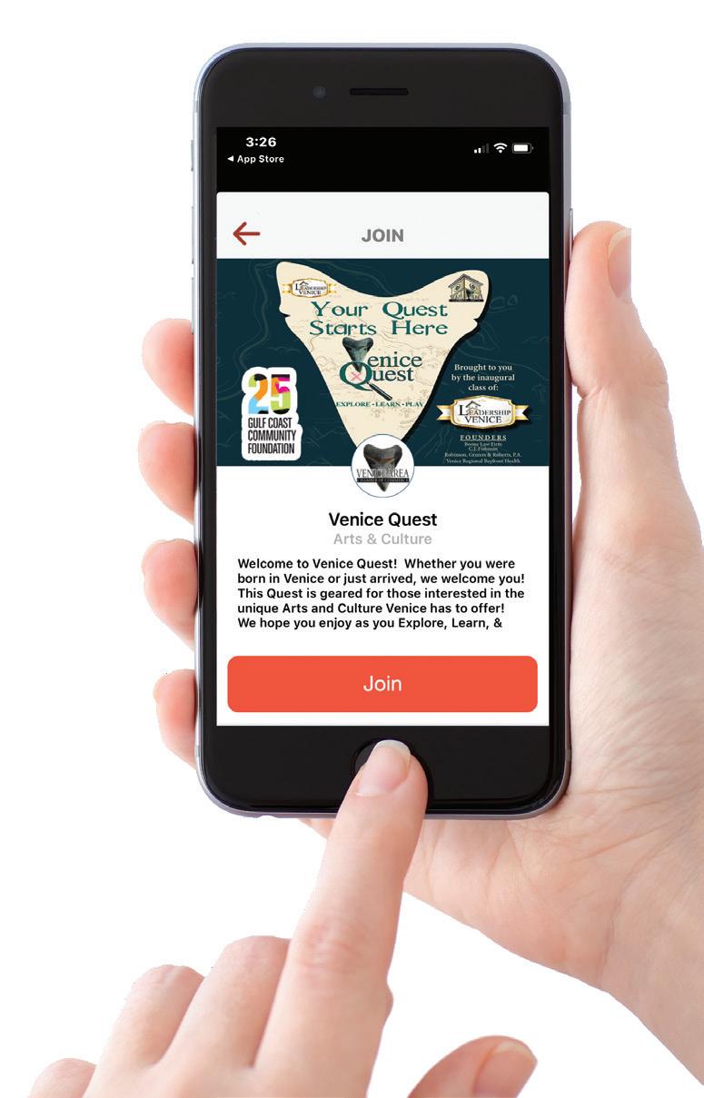 If you strike out on the beaches, after completing one of the Quest scavenger hunts (info on page 14), you can stop in to the Chamber for your own bag. While you’re at the Chamber have your photo taken in front of our huge oversized Megalodon Tooth Monument. The # 1 photo spot in Venice.