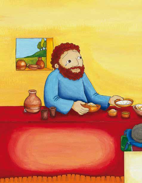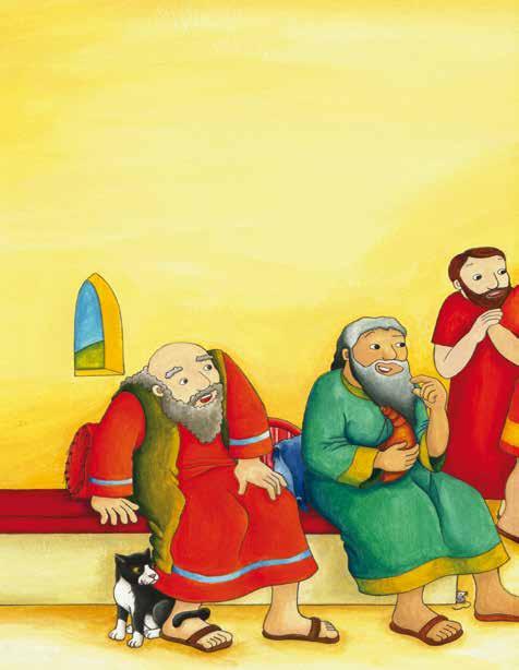 Many people came to listen to Jesus. When it was time to eat, Jesus told his disciples to find some food for the crowd. Andrew answered, “Here is a boy who has two small fish and five small loaves with him.” Jesus took the food, said a prayer, and shared it among all who were there. Everybody had enough to eat!