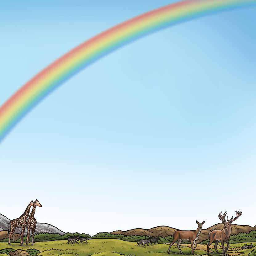 And he said, “You mustn’t kill other human beings. My Spirit lives in all of you. Respect one another.” Then God put a rainbow in the sky. He said, “Whenever you see a rainbow you must remember my promise to you. I won’t destroy the earth with water again. When I see the rainbow, I will also remember my promise to you.” Genesis 8 and 9